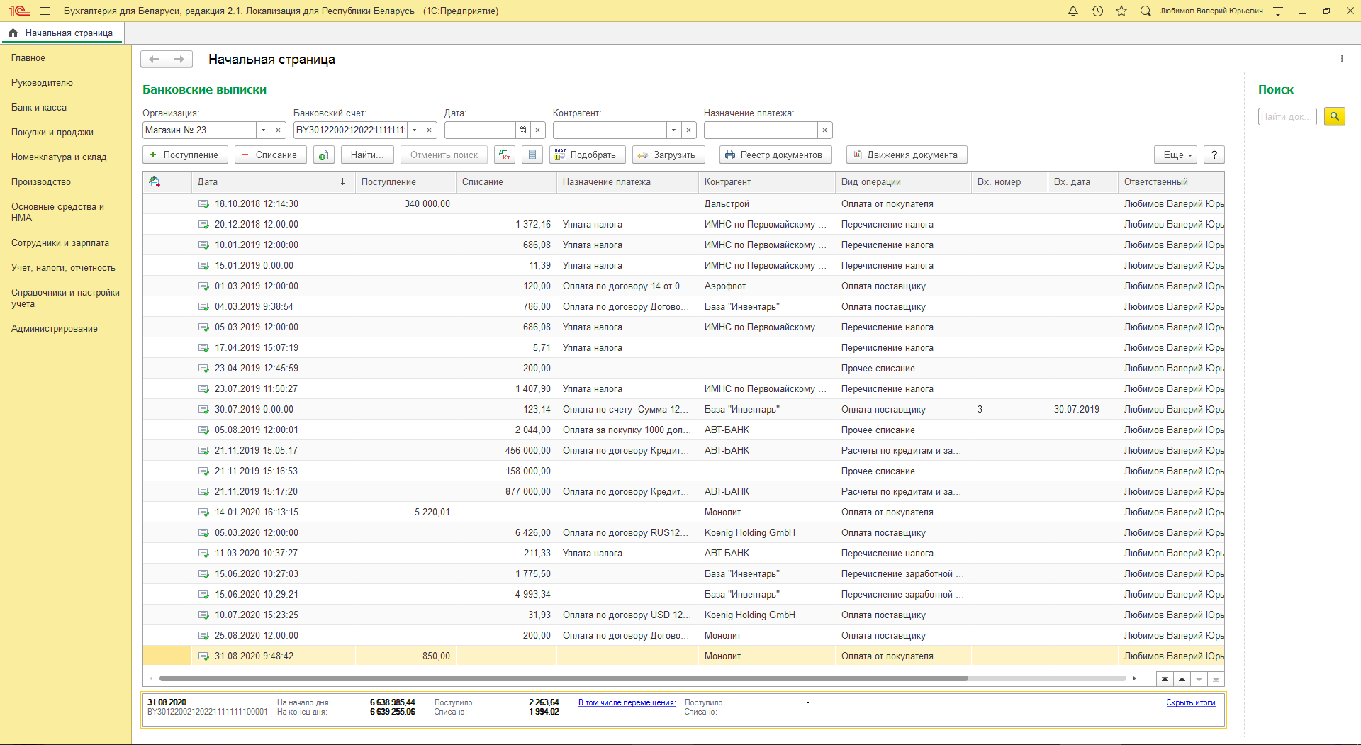 - автоматическое выполнение завершающих операций месяца;