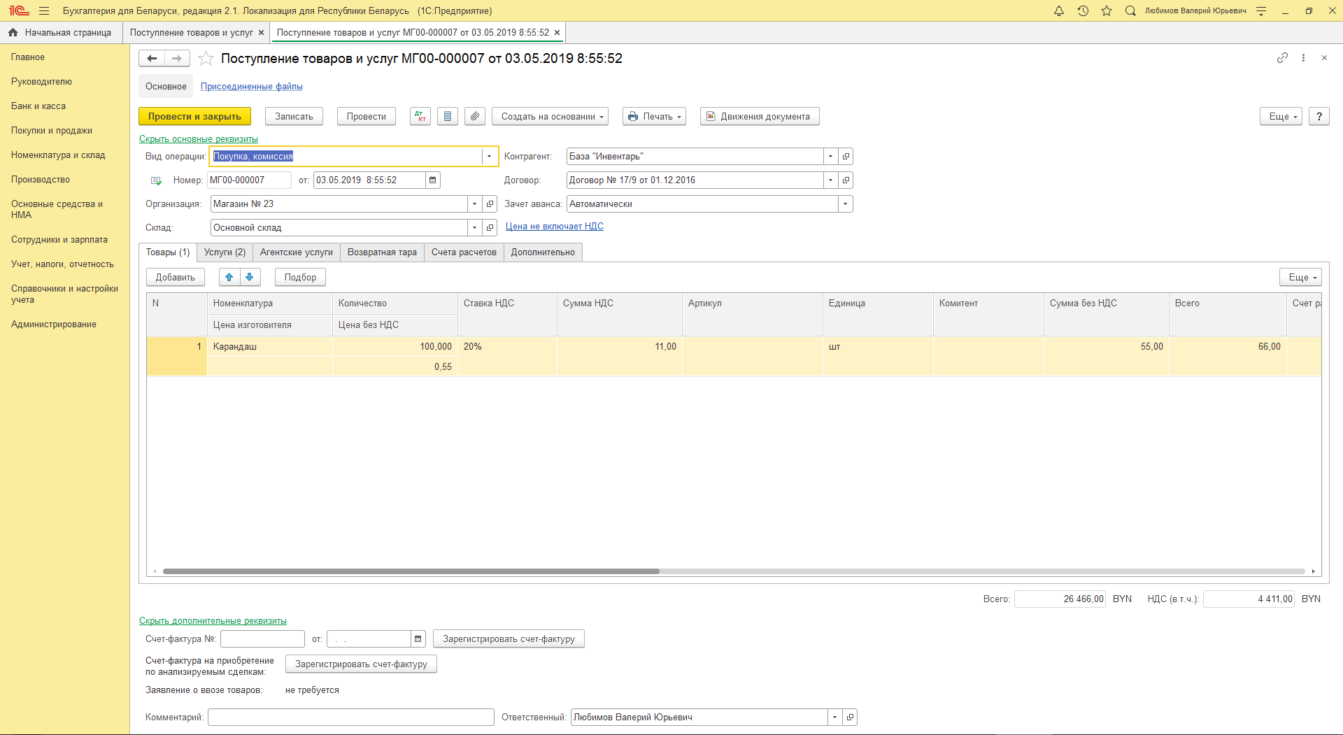 - учет торговых операций, в том числе в розничной и комиссионной торговле;