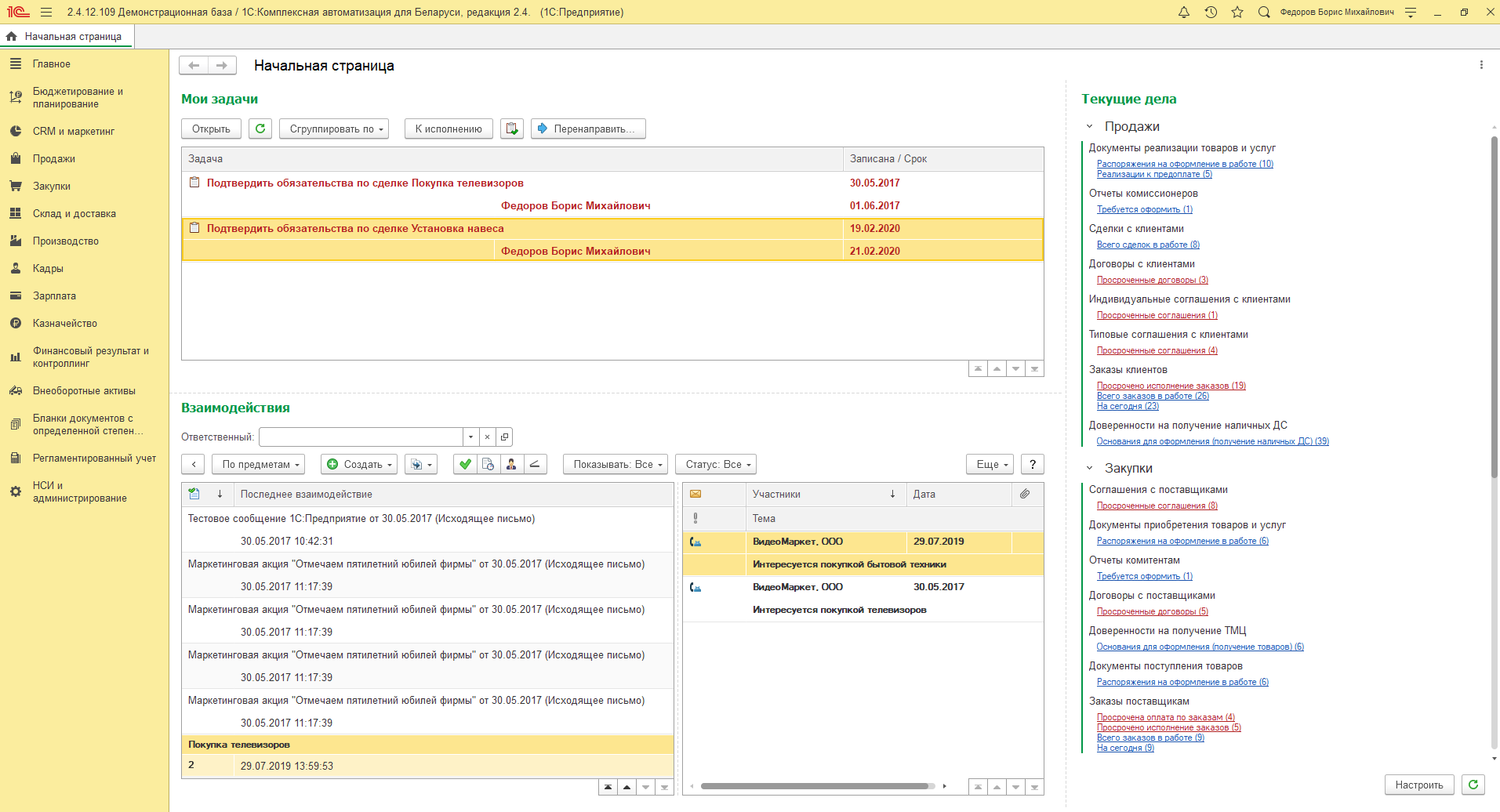 - Управление закупками: анализ и подбор поставщиков; регистрация цен поставщика; формирование и контроль заказов; регистрация и контроль графиков оплаты и сроков поставки товаров; контроль задолженности и своевременности оплаты поставщикам; регистрация расхождения при приеме товаров, анализ причин сбоя поставок; учет дополнительных услуг и дополнительных расходов при поставке товаров; регистрация таможенной декларации при закупке импортных товаров и учет оплаты таможенных пошлин и сборов; оформление закупки импортных товаров из стран Евразийского экономического союза.